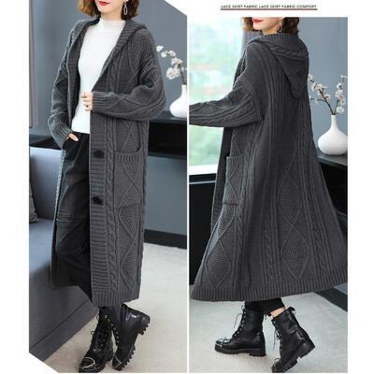 豊富なサイズ展開が嬉しいロングニットカーディガン。