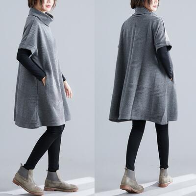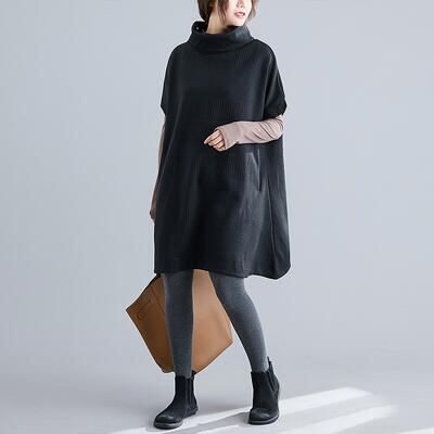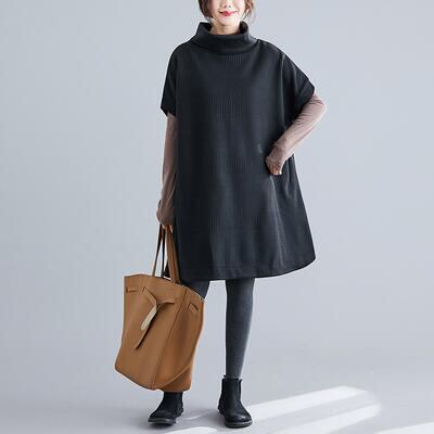 ゆったりしたシルエットのタートルネック半袖ワンピース。