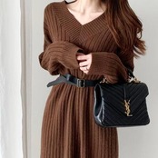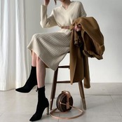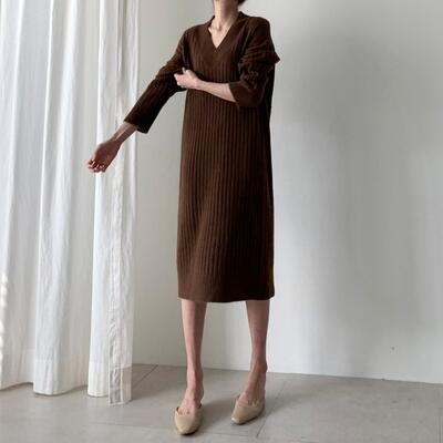 シンプルで着回しやすいリブニットワンピース。