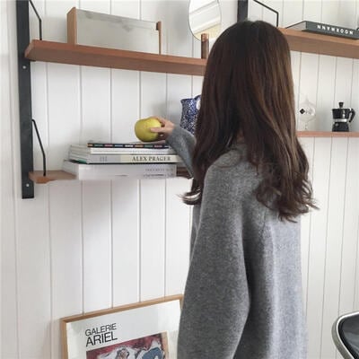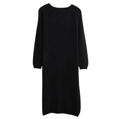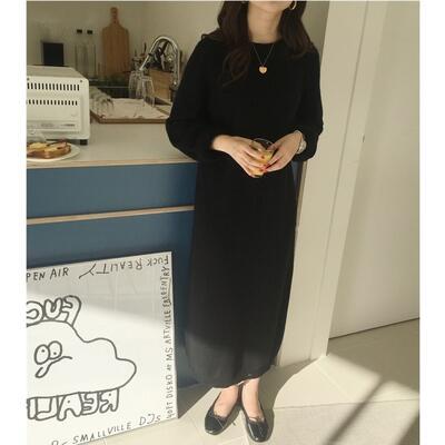 シンプルで着回しやすいクルーネックのニットワンピース。
