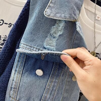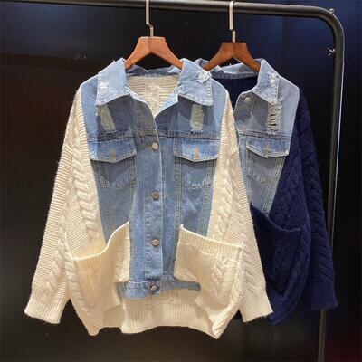 デニムとニットの異素材MIXが可愛いジャケット。