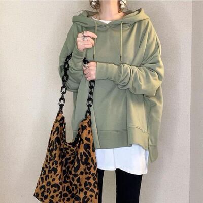 トップス レディース スウェット パーカー カジュアル 長袖 ストリート おしゃれ 可愛い フェミニン プルオーバー シンプル ゆったり オーバーサイズ ビッグシルエット スポーティ レイヤード グリーン 緑 秋 春 冬 20代 30代 40代 50代