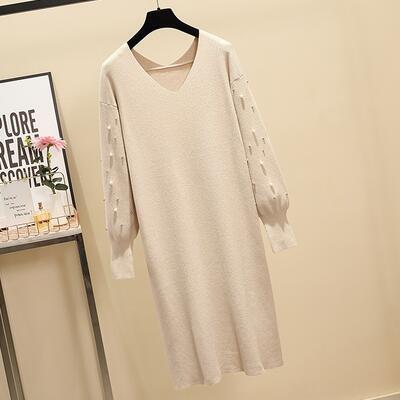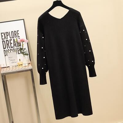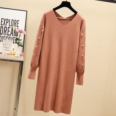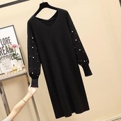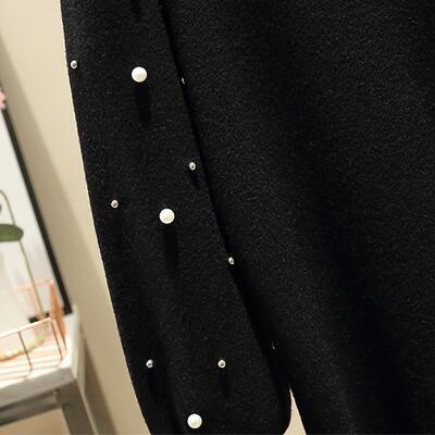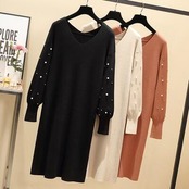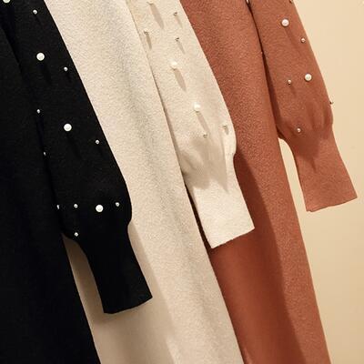 袖にパールをあしらった上品さ漂うニットワンピース。