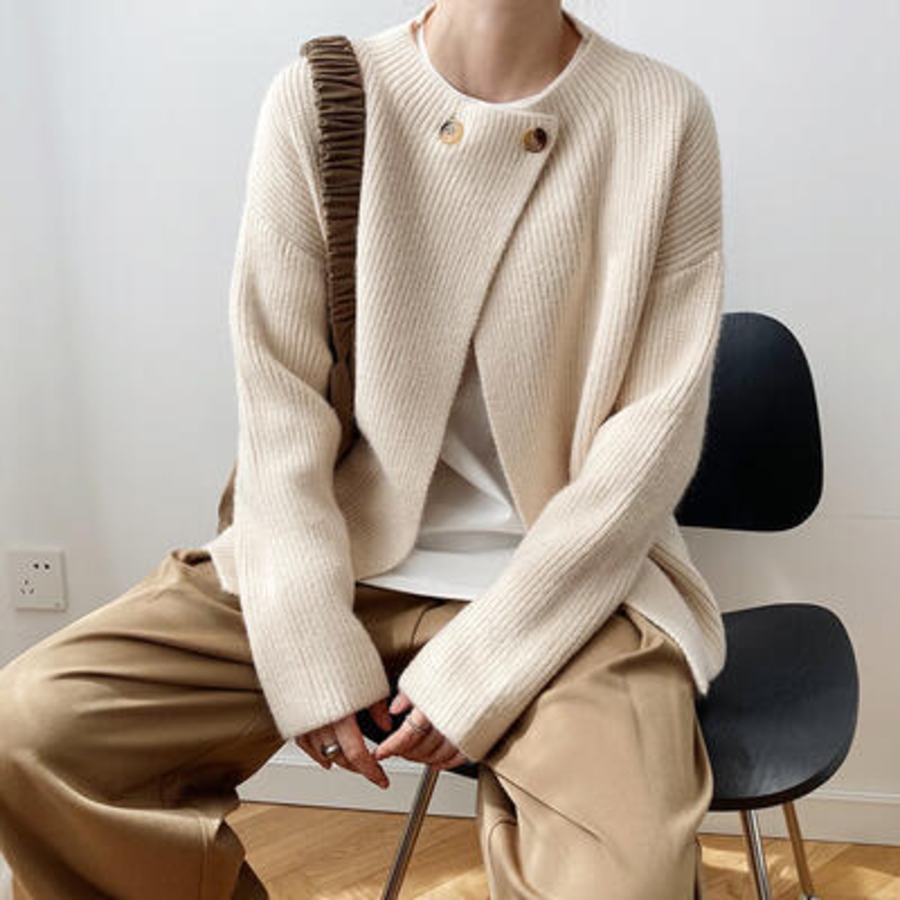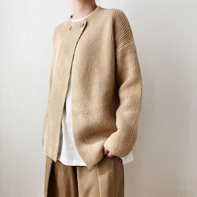 暖かみのあるナチュラルカラーが魅力のニットカーディガン。