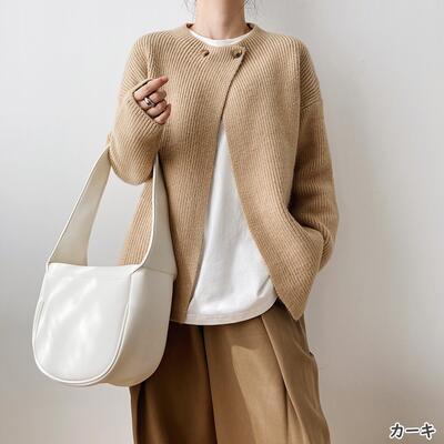 全2色 レイヤードトップス レディース カーディガン ニット シンプル きれいめ カジュアル 長袖 羽織 おしゃれ 可愛い フェミニン ナチュラル クラシカル ゆったり クルーネック 大きいサイズ ベージュ カーキ 秋 春 冬 20代 30代 40代 50代