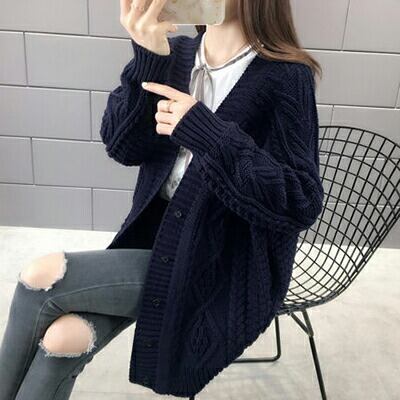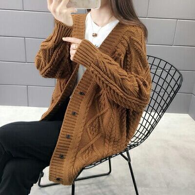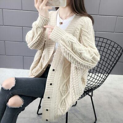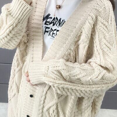 厚手のローゲージニットカーディガン。