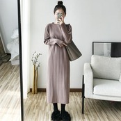 シンプルで着回しやすいニットワンピース。