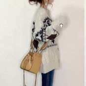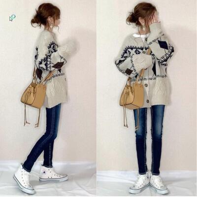 ノルディック柄×アーガイル柄のニットカーディガン。