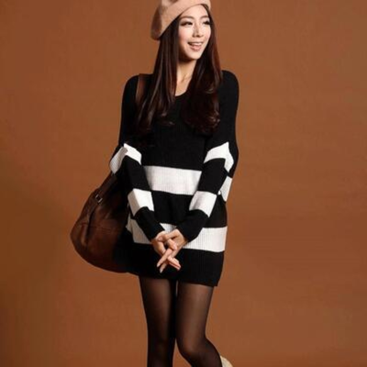 ニット セーター トップス レディース ボーダー カジュアル チュニック プルオーバー Vネック おしゃれ 長袖 可愛い フェミニン 体型カバー ゆったり オーバーサイズ こなれ感 ブラック 黒 ホワイト 白 秋 春 冬 20代 30代 40代 50代