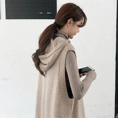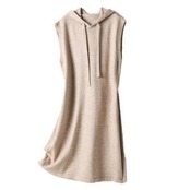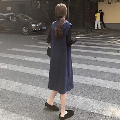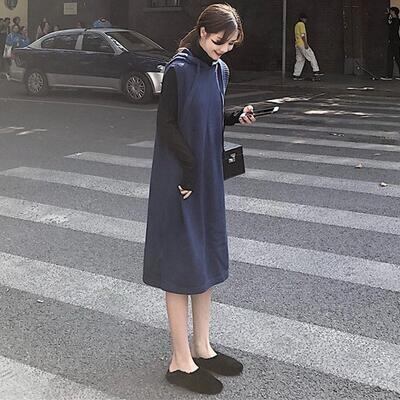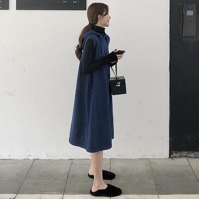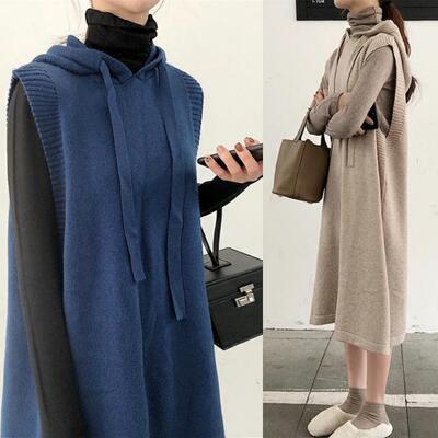 全2色 レイヤード セットアップ 2点セット レディース カジュアル おしゃれ ワンピース ニット タートルネック フード 長袖 ツーピース 重ね着 ベスト トップス 大きいサイズ ベージュ ブルー ブラック 黒 春 秋 冬 20代 30代 40代 50代