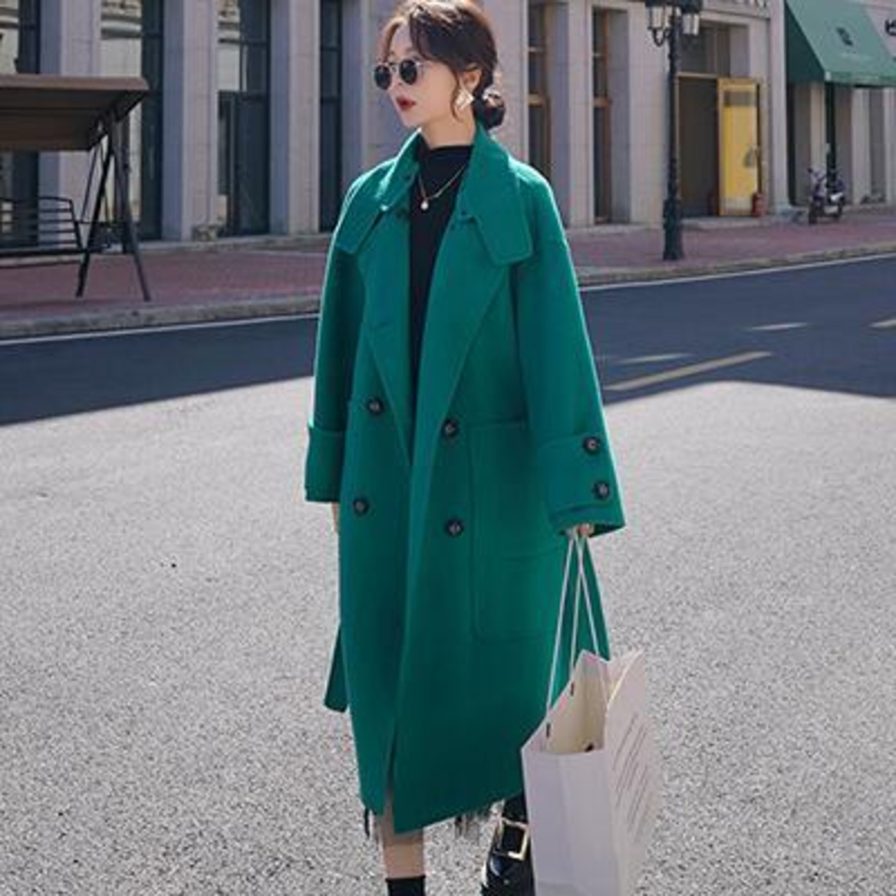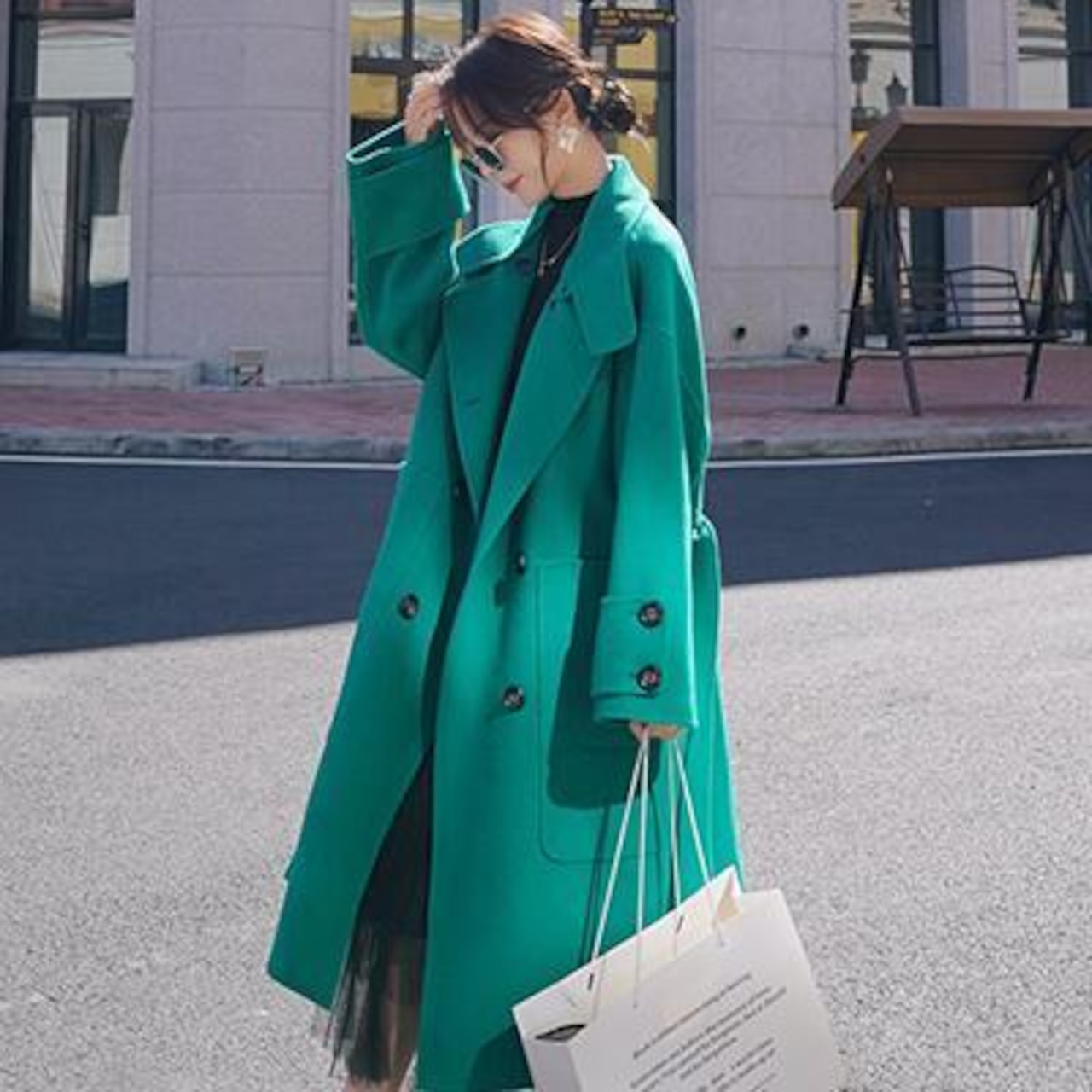 ウール混 チェスターコート レディース 秋 冬 ロングコート きれいめ カジュアル 袖あり 長袖 ロング丈 膝丈 コート 韓国 コーデ 高見え ベルト お出かけ デート おしゃれ ホワイト グリーン 緑 20代 30代 40代 50代