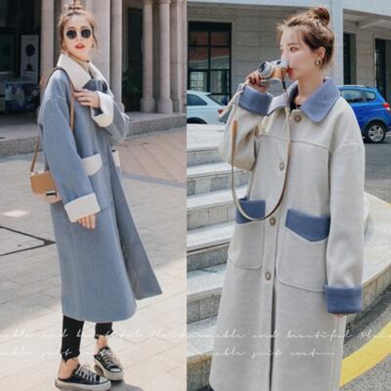 全2色 大きいサイズ ステンカラーコート アウター レディース ジャケット コート きれいめ カジュアル 羽織 おしゃれ 長袖 可愛い バイカラー フェミニン メルトン ドロップショルダー ゆったり オーバーサイズ ブルー ベージュ 秋 春 冬 20代 30代 40代 50代