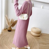 ハイウエストで切り替えたニットワンピース。