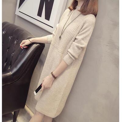 全4色 大きいサイズ ニット ワンピース ロングワンピ きれいめ カジュアル ひざ丈 おしゃれ レディース ワンピ ドレス フェミニン シンプル ゆったり リラックス ハイネック 切り替え 暖かい ベージュ ブラック 黒 グレー 春 秋 冬 20代 30代 40代 50代
