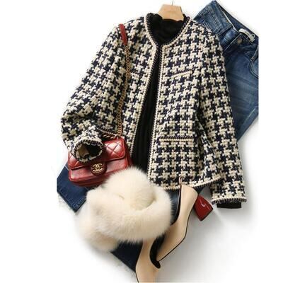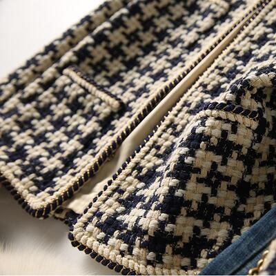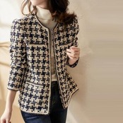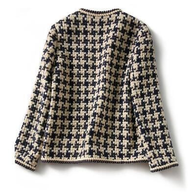 千鳥格子柄のツイードが上品な印象のジャケット。