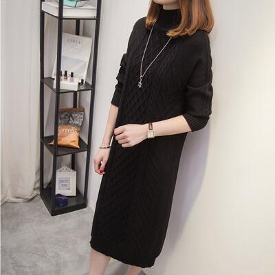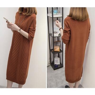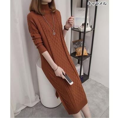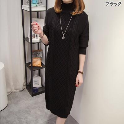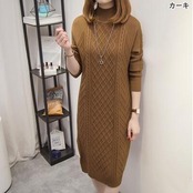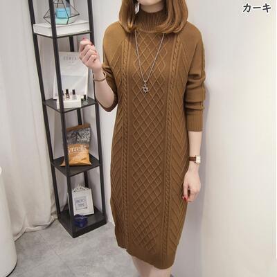 全3色 大きいサイズ ニット ワンピース ロングワンピ ケーブル編み ハイネック きれいめ カジュアル ひざ丈 おしゃれ レディース ワンピ ドレス フェミニン 長袖 シンプル スリム 体型カバー タートルネック ブラック 黒 カーキ ブラウン 春 秋 冬 20代 30代 40代 50代