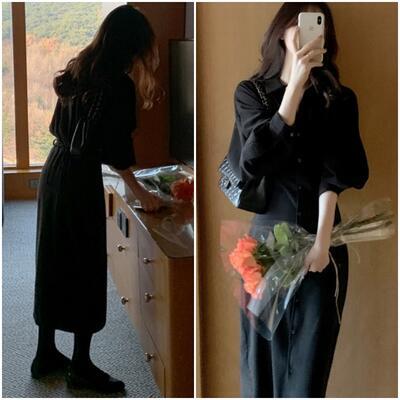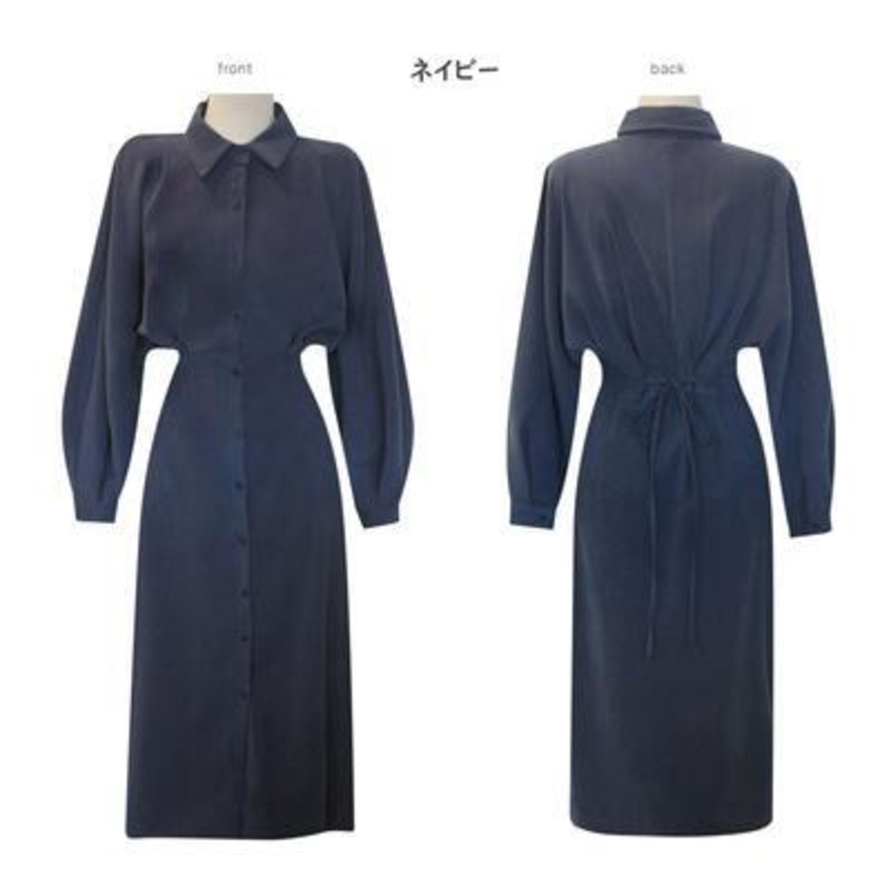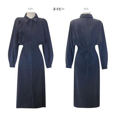 全3色 大きいサイズ 袖コンシャス ワンピース パフスリーブ シャツワンピ きれいめ カジュアル ロングワンピ ロング丈 長袖 おしゃれ レディース ワンピ ドレス タイト スリム フェミニン ハイウエスト ネイビー ベージュ ブラック 黒 春 秋 冬 20代 30代 40代 50代