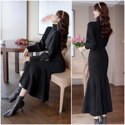 マーメイドシルエットが女性らしさを引き立てるニットワンピース。