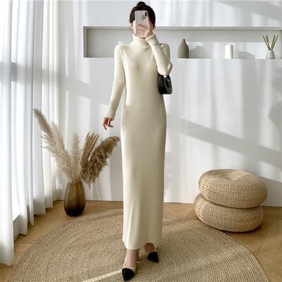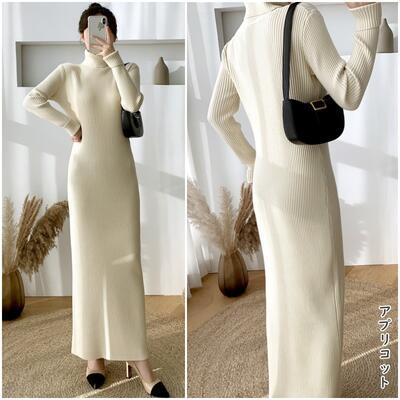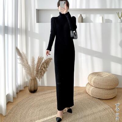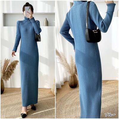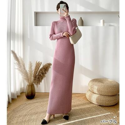 全6色 シンプル 大きいサイズ ニット ワンピース ロングワンピ きれいめ カジュアル ロング丈 長袖 タートルネック おしゃれ レディース ワンピ ドレス フェミニン エレガント タイト スリム ブラウン パープル カーキ ベージュ ブルー 青 ブラック 黒 春 秋 冬 20代 30代 40代 50代