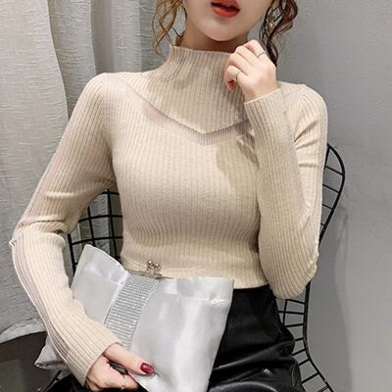全4色 セーター トップス レディース カジュアル 袖あり 長袖 おしゃれ 可愛い フェミニン タートルネック ハイネック きれいめ シンプル 高見え ブラック 黒 アプリコット ブルー 青 ホワイト 白 秋 冬 春 20代 30代 40代 50代