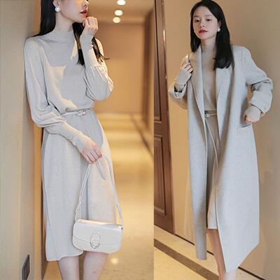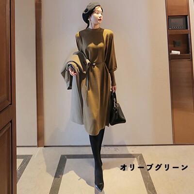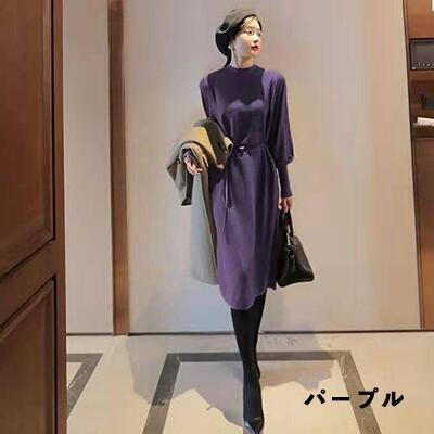 全4色 ニット ワンピース ロングワンピ きれいめ カジュアル ひざ丈 袖あり 長袖 おしゃれ レディース ワンピ ドレス シンプル 大きいサイズ カーキ オリーブグリーン 緑 パーブル 紫 ブラック 黒 春 秋 冬 20代 30代 40代 50代
