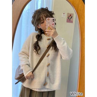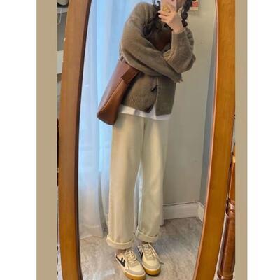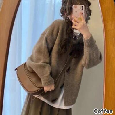 カーディガンは前を閉じてセーターのようにも着用できます。