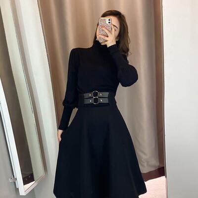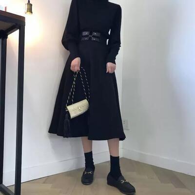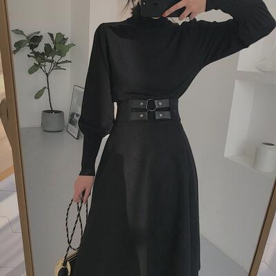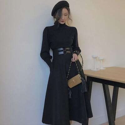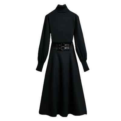 セットアップ 2点セット トップス ニット スカート セーター パフスリーブ ハイネック ミモレ丈 長袖 レディース カジュアル きれいめ おしゃれ フェミニン 可愛い ワンピース 着回し シンプル 大きいサイズ ブラック 黒 春 秋 冬 20代 30代 40代 50代