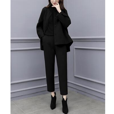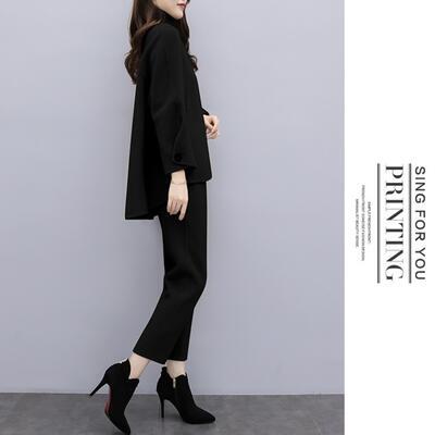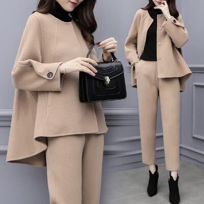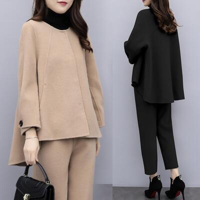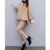 全2色 体型カバー セットアップ 2点セット スーツ ジャケット パンツ カーディガン ノーカラー エレガント クロップド丈 長袖 レディース カジュアル きれいめ おしゃれ フェミニン ゆったり シンプル 大きいサイズ ブラック 黒 カーキ 春 秋 冬 20代 30代 40代 50代