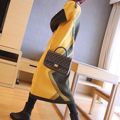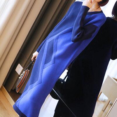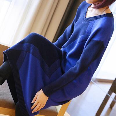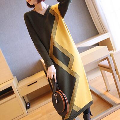 全2色 ニット ワンピース ロングワンピ きれいめ カジュアル ロング丈 高見え 袖あり 長袖 おしゃれ 厚手 着痩せ Vネック レディース ワンピ ドレス レトロ 通勤 お出かけ グリーン 緑 ブルー 青 春 秋 冬 20代 30代 40代 50代