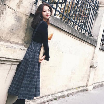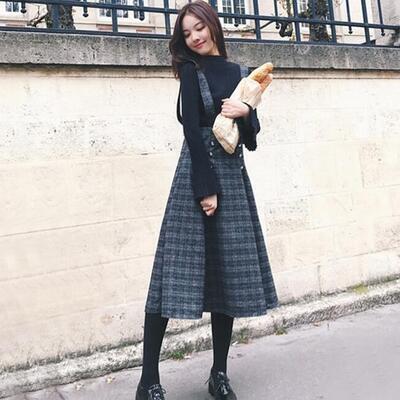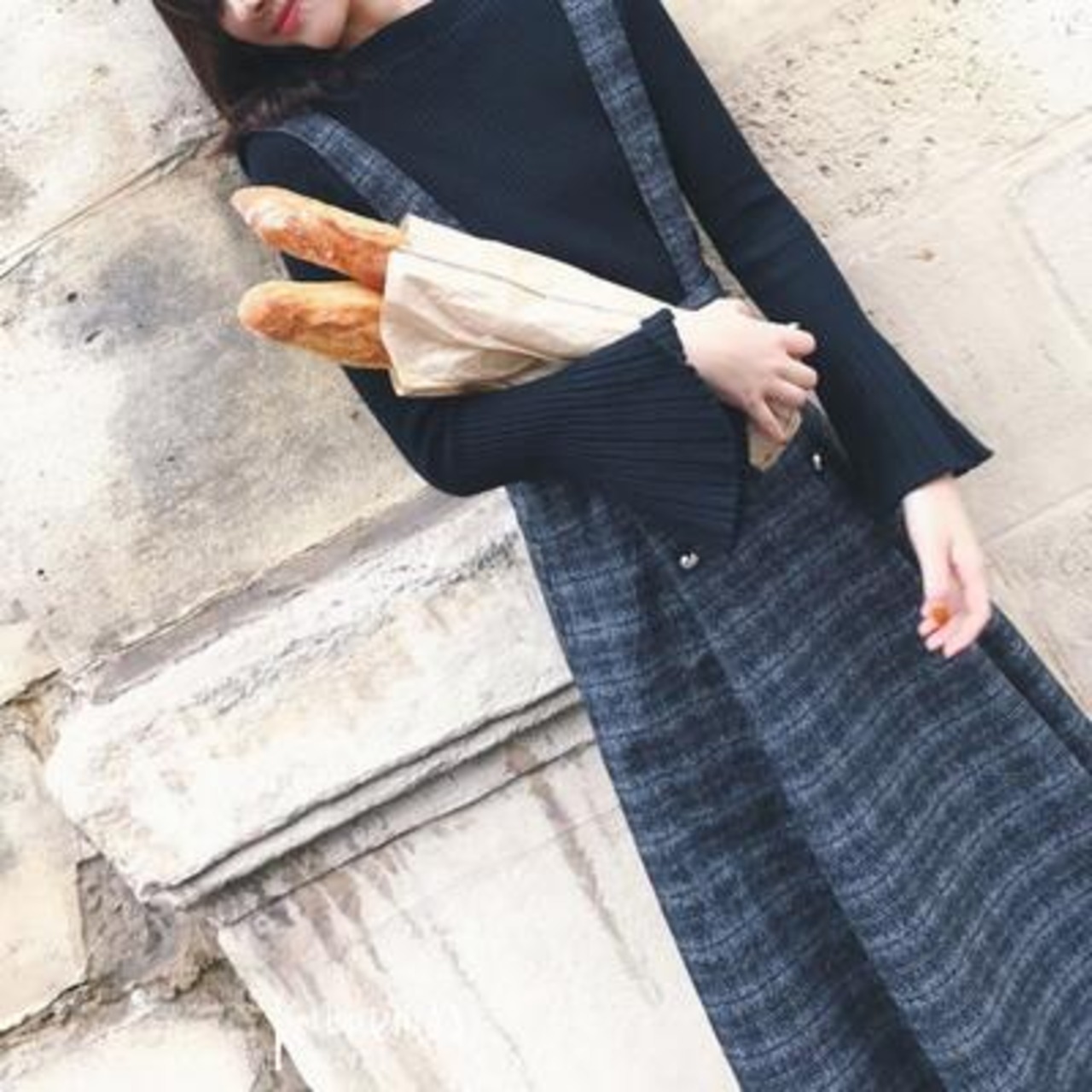落ち着いたグレンチェック柄のサロペットスカートです。