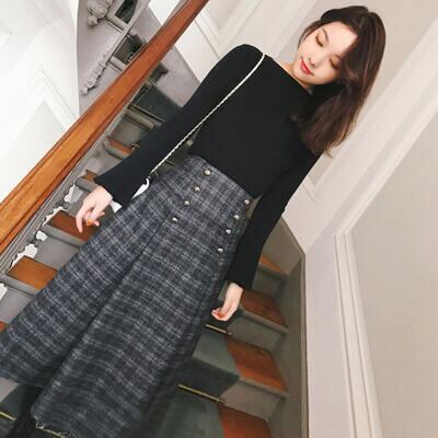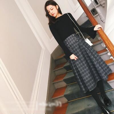 スカート サロペットスカート ジャンパースカート ハイウエスト グレンチェック きれいめ カジュアル ミモレ丈 クラシカル フレア フェミニン お出掛け 大人可愛い 大きいサイズ グレー 春 秋 冬 20代 30代 40代 50代