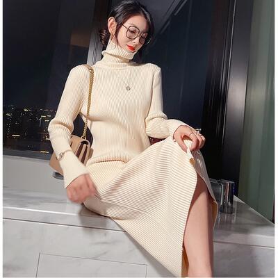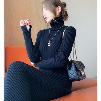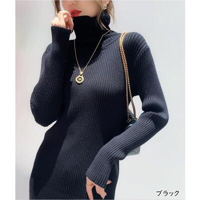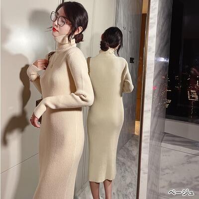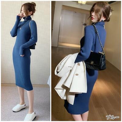 全4色 シンプルニット ワンピース ロングワンピ タートルネック きれいめ カジュアル 長袖 ハイネック おしゃれ レディース ワンピ ドレス フェミニン エレガント 大きいサイズ タイト スリム カーキ ベージュ ブルー 青 ブラック 黒 春 秋 冬 20代 30代 40代 50代