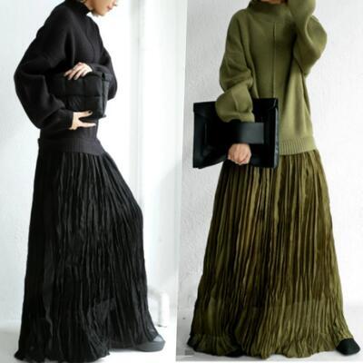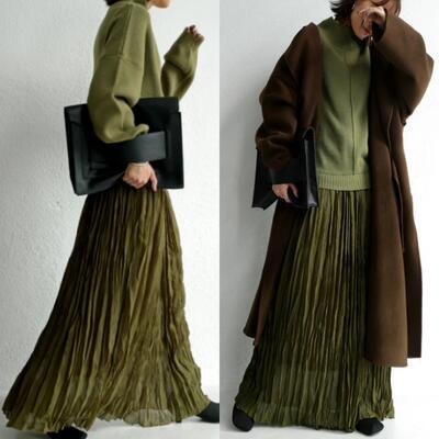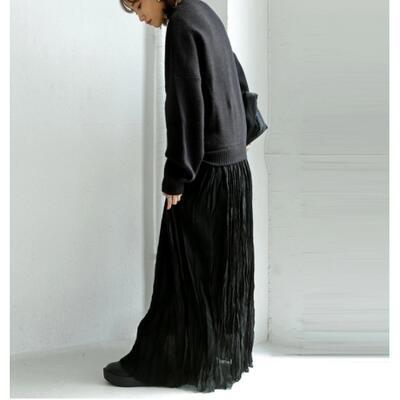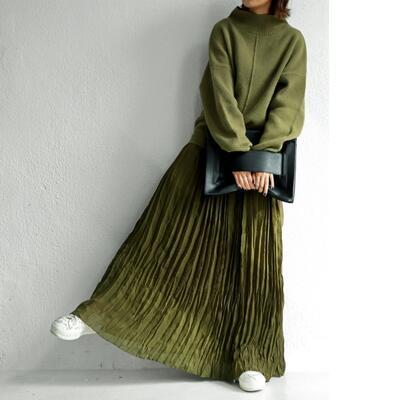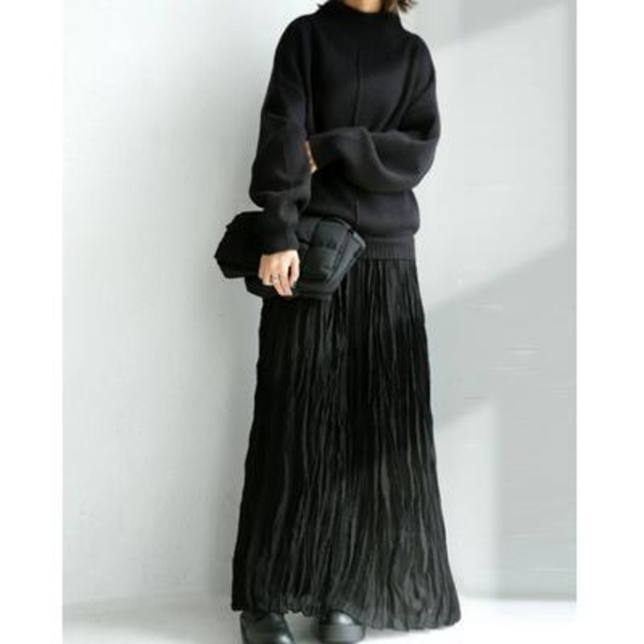 全2色 ニット ワンピース ロングワンピ ハイネック ドッキング きれいめ カジュアル 長袖 ロング丈 切り替え おしゃれ レディース ワンピ ドレス フェミニン リンクルスカート マキシ丈 モックネック グリーン 緑 ブラック 黒 春 秋 冬 20代 30代 40代 50代