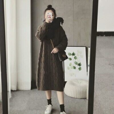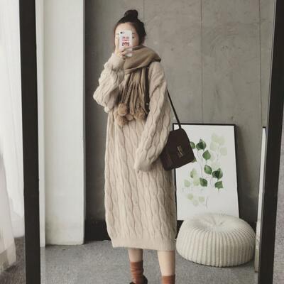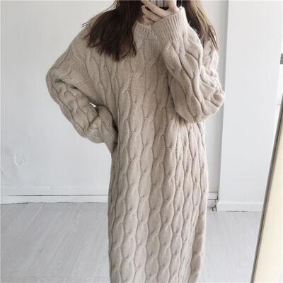 全2色 ニット ワンピース ロングワンピ ケーブル編み きれいめ カジュアル 長袖 ミモレ丈 おしゃれ レディース ワンピ ドレス フェミニン シンプル ゆったり 大きいサイズ ベージュ ブラウン 春 秋 冬 20代 30代 40代 50代