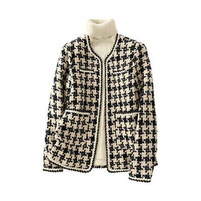 かっこいい 格子柄ツイード コート ジャケット レディース 大きいサイズ おしゃれ 卒業式 卒園式 入園式 入学式 七五三 パーティ ビジネス ノーカラージャケット チェック ベージュ ブラック 黒 XL 長袖 20代 30代 40代 50代 秋 冬 きれいめ