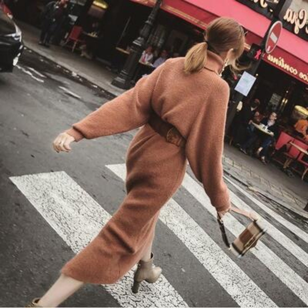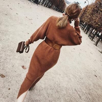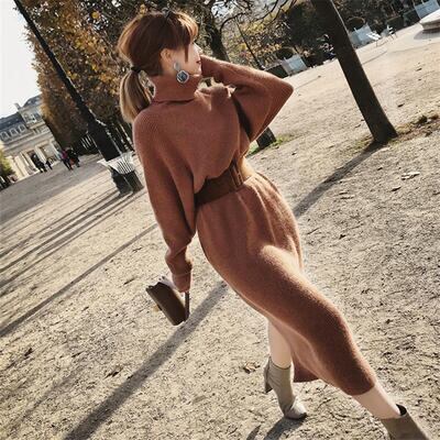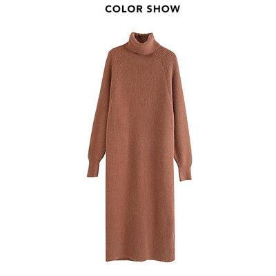 全2色 ニット ワンピース ロングワンピ タートルネック きれいめ カジュアル 長袖 ミモレ丈 おしゃれ レディース ワンピ ドレス フェミニン エレガント シンプル ゆったり 体型カバー ハイネック ブラウン ブラック 黒 春 秋 冬 20代 30代 40代 50代