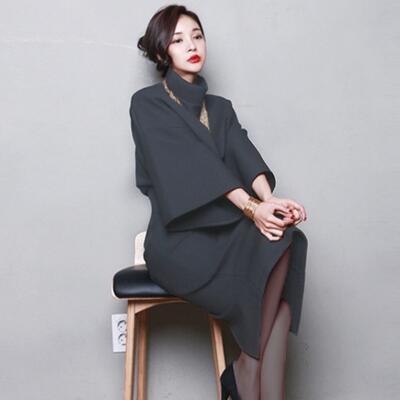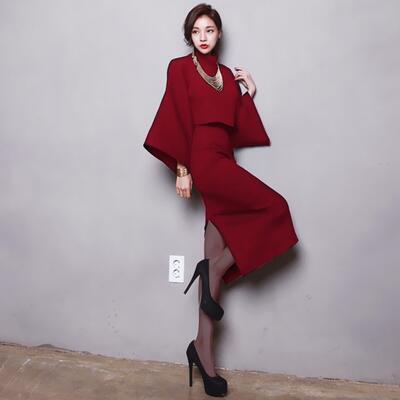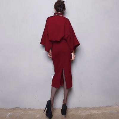 全3色 大きいサイズセットアップ 2点セット トップス 七分袖 フレアスリーブ スカート ショート丈 ミモレ丈 タートルネック レディース カジュアル 可愛い エレガント きれいめ シンプル フェミニン ゆったり バーガンディ グレー ブラック 黒 春 秋 冬 20代 30代 40代 50代
