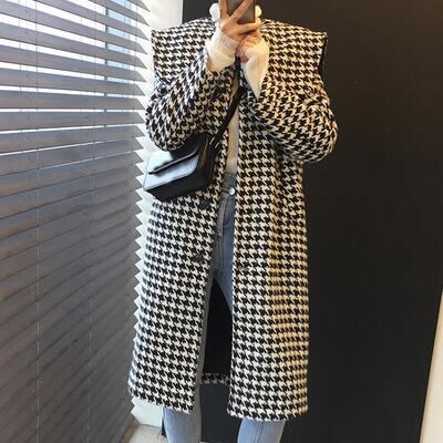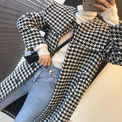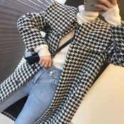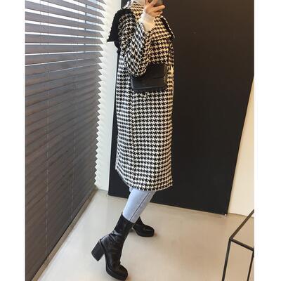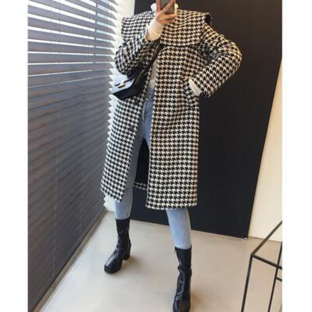 クラシカルな雰囲気の千鳥格子柄コート。