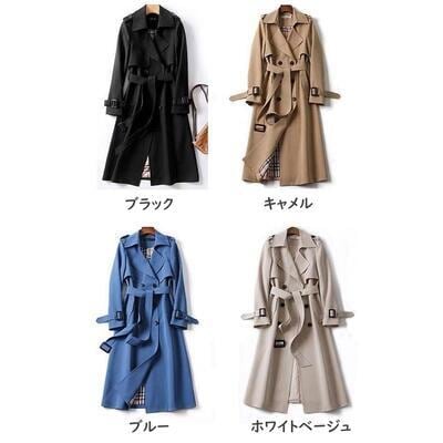 全4色 大きいサイズ トレンチコート チェスター レディース きれいめ エレガント カジュアル ジャケット アウター ロング丈 コート おしゃれ 長袖 かっこいい チェック 大人可愛い ゆったり フェミニン ブルー ベージュ ホワイト 白 ブラック 黒 春 秋 冬 20代 30代 40代 50代