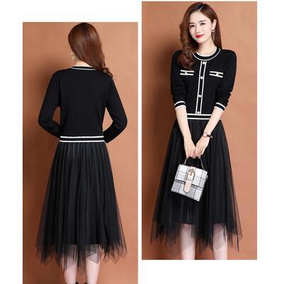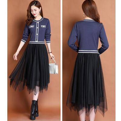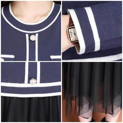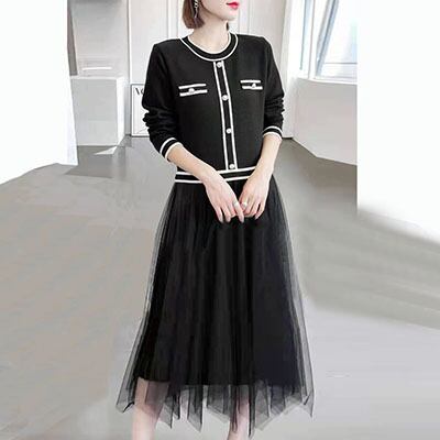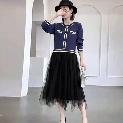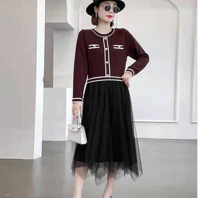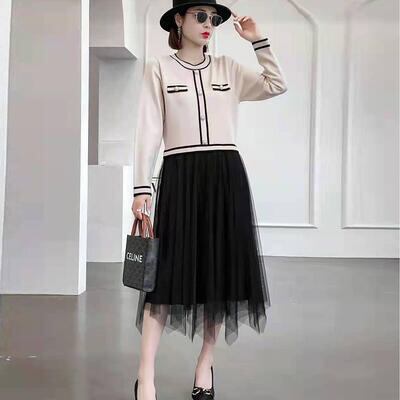 ニットトップスとチュールスカートをドッキングさせたワンピース。