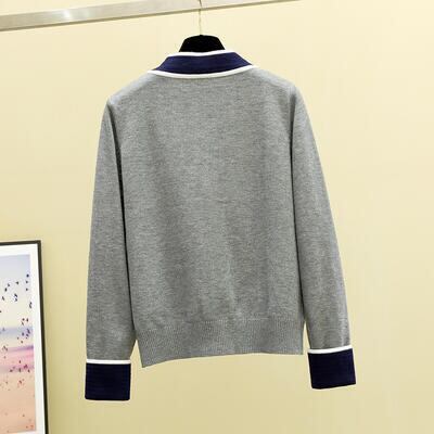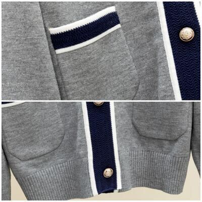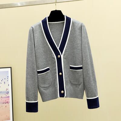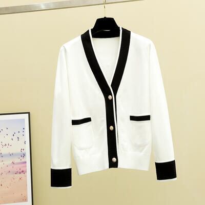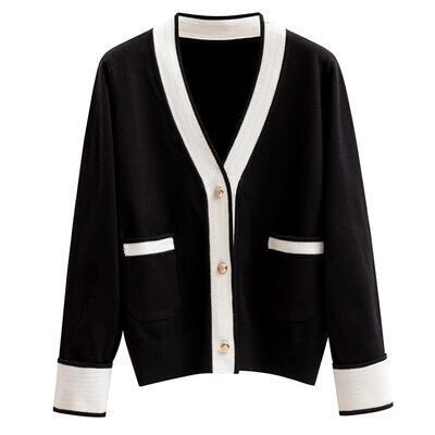 全3色 ニット カーディガン トップス 配色 レディース カジュアル おしゃれ 可愛い トラッド フェミニン きれいめ バイカラー かっこいい シンプル 大きいサイズ Vネック ブラック 黒 ホワイト 白 グレー 春 秋 冬 20代 30代 40代 50代