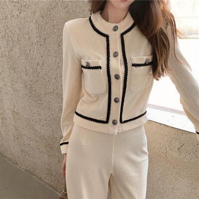 セットアップ 2点セット ジャケット パンツ カーディガン ショート丈 コーデュロイ エレガント レディース カジュアル きれいめ 可愛い おしゃれ ワイドレッグ ロングパンツ フェミニン かっこいい ホワイト 白 春 秋 冬 20代 30代 40代 50代