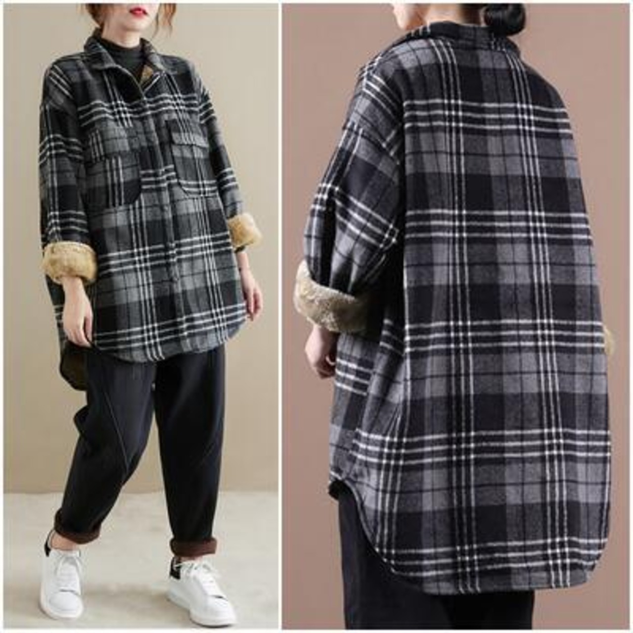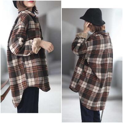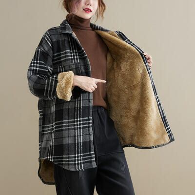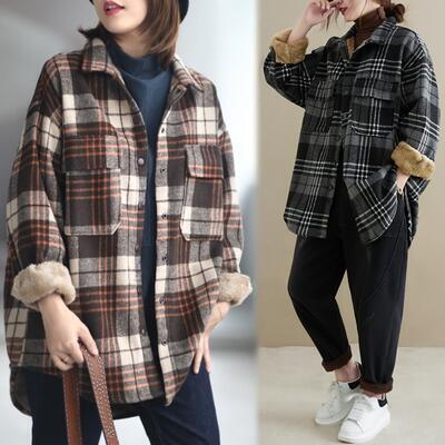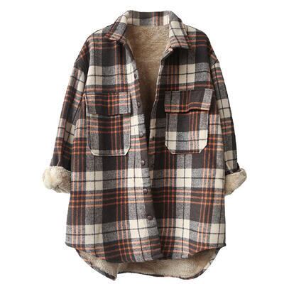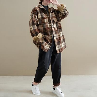 全2色 シャツジャケット レディース チェック カジュアル ジャケット アウター コート おしゃれ 長袖 ボア 裏起毛 大人可愛い ゆったり オーバーサイズ 暖かい 体型カバー ブラウン ブラック 黒 グレー 春 秋 冬 20代 30代 40代 50代