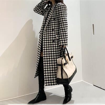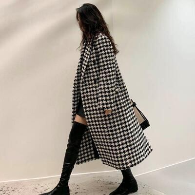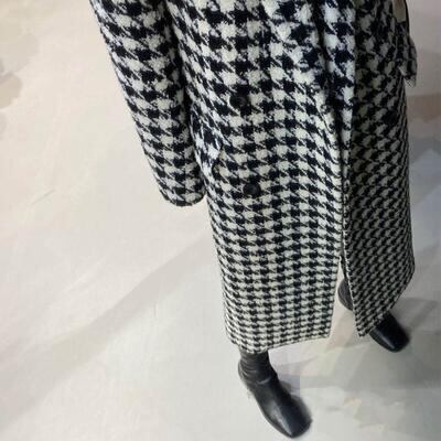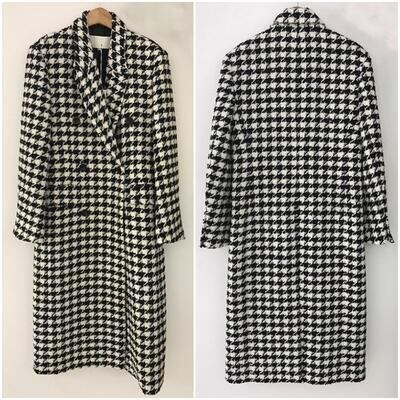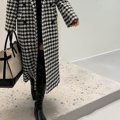 大きいサイズ ウール混 チェスターコート レディース 千鳥格子 チェック きれいめ エレガント カジュアル ジャケット アウター ロング丈 コート おしゃれ 長袖 韓国 大人可愛い フェミニン ゆったり オーバーサイズ ブラック 黒 春 秋 冬 20代 30代 40代 50代
