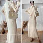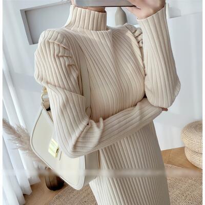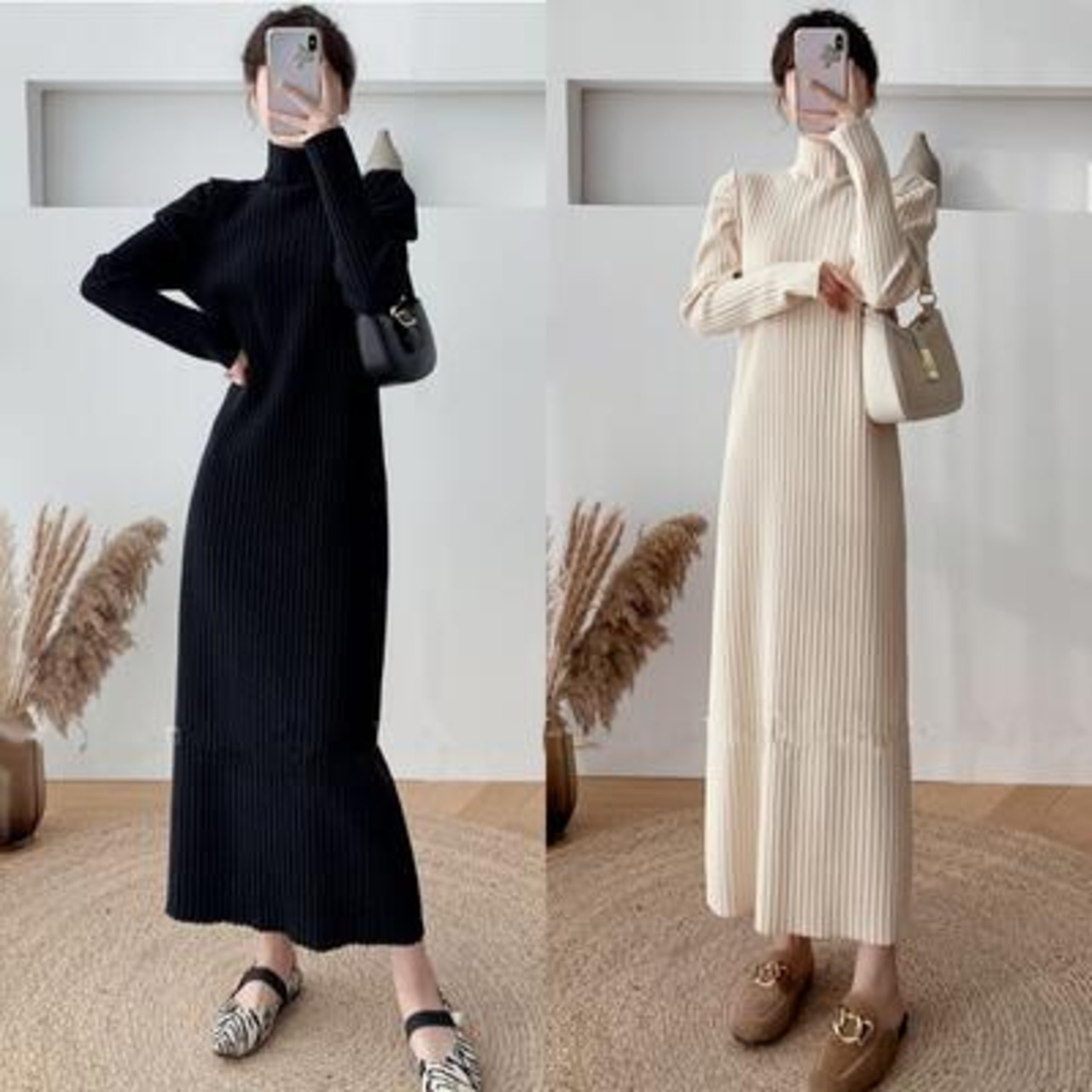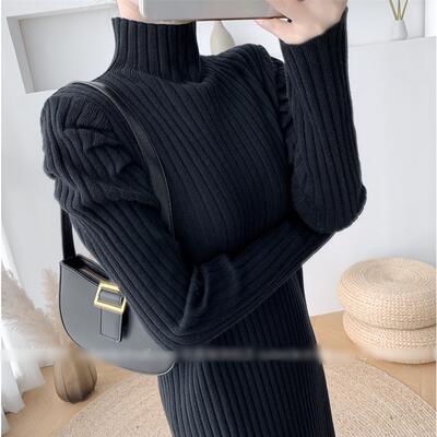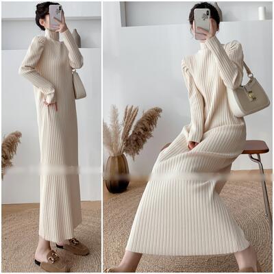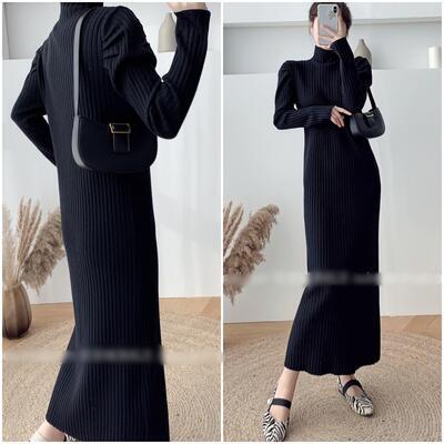 全2色 ニット ワンピース ロングワンピ きれいめ カジュアル ロング丈 長袖 タートルネック ワンピ レディース ドレス エレガント スタイルアップ ハイネック シンプル フェミニン ベージュ ブラック 黒 春 秋 冬 20代 30代 40代 50代