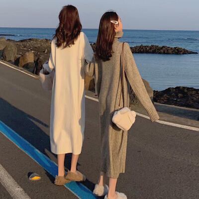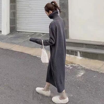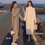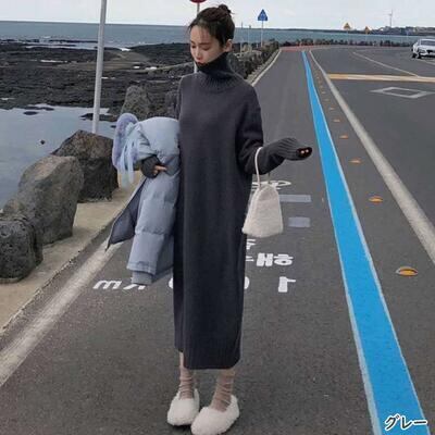 全4色 ニット ワンピース ロングワンピ きれいめ カジュアル ミモレ丈 長袖 タートルネック ワンピ レディース ドレス ゆったり リラックス シンプル フェミニン 大きいサイズ グレー ブラック 黒 ベージュ カーキ 春 秋 冬 20代 30代 40代 50代