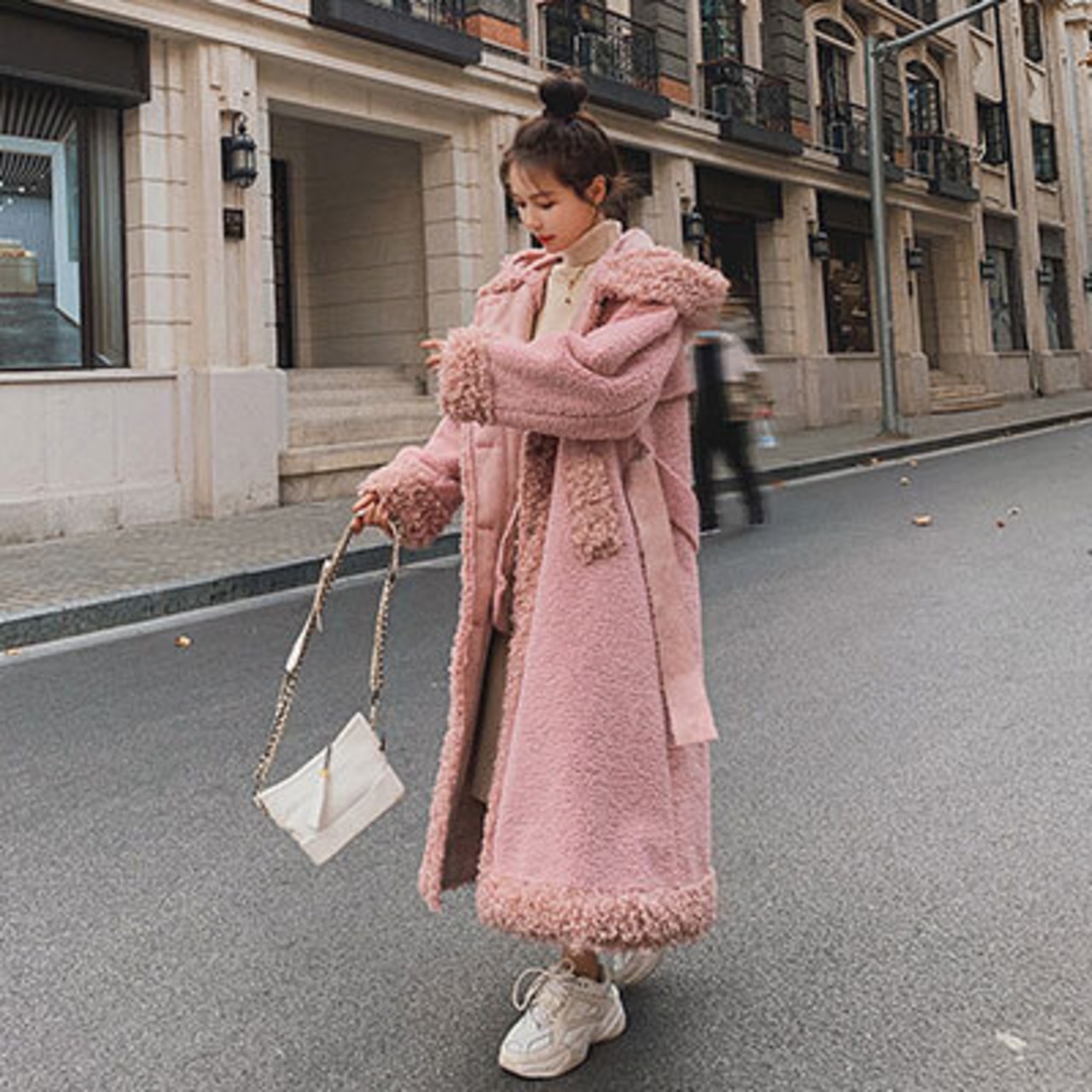 チェスターコート レディース 秋 冬 ロングコート きれいめ カジュアル フード 袖あり 長袖 ロング丈 コート 韓国 コーデ ガーリー ボア 厚手 かわいい 着痩せ お出かけ おしゃれ デート ピンク 20代 30代 40代 50代