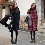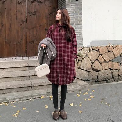 全2色 ワンピース シャツワンピ ロングワンピ チェック柄 カジュアル ミモレ丈 長袖 ワンピ レディース ドレス ゆったり 体型カバー 大人可愛い おしゃれ オーバーサイズ ビッグシルエット フェミニン レッド 赤 グリーン 緑 春 秋 冬 20代 30代 40代 50代