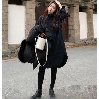 ゆったりシルエットのチェックシャツワンピース。