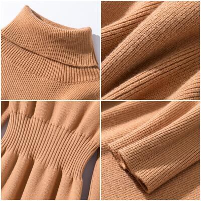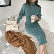 シンプルで着回しやすいタートルネックワンピース。